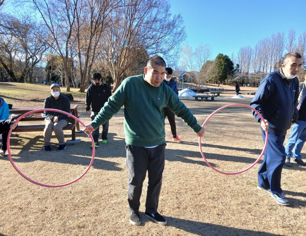 彩の森公園でニュースポーツを行いました。その日は良い天気でしたが風が少し吹いていて寒かったですね。でも風にも負けず、元気に体を動かしていい運動になりました!