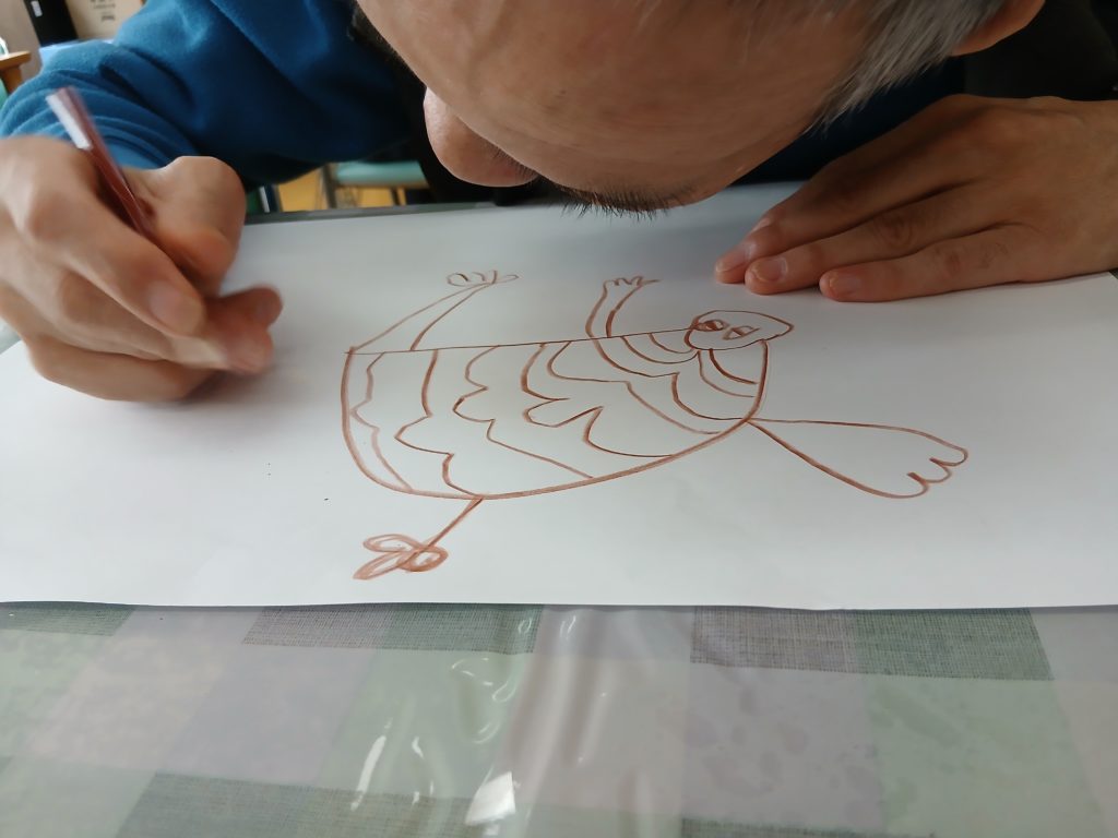 光の園ではそれぞれ皆さんが好きな絵を描いています。個性豊かなとても素敵なセンスが輝いていますね。