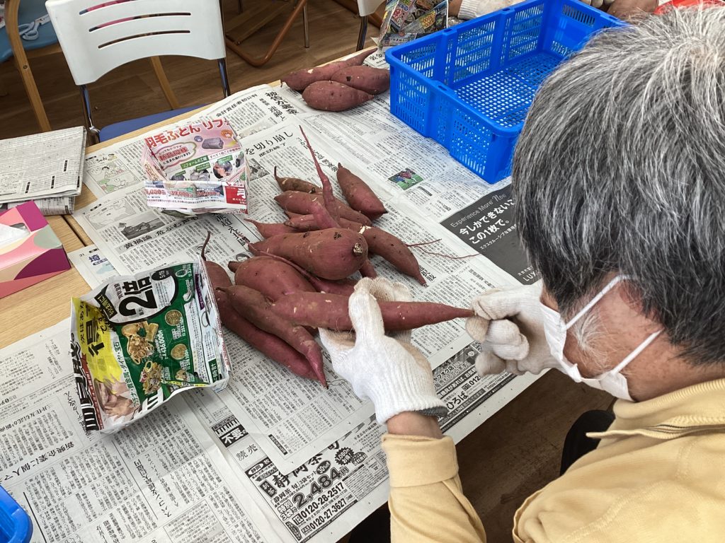 はあもにいの生活介護では、所沢ゼロファーム様から受託された「サツマイモの根取り作業」を行っています。
